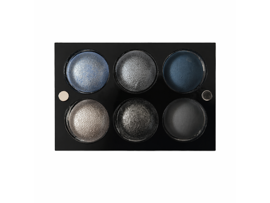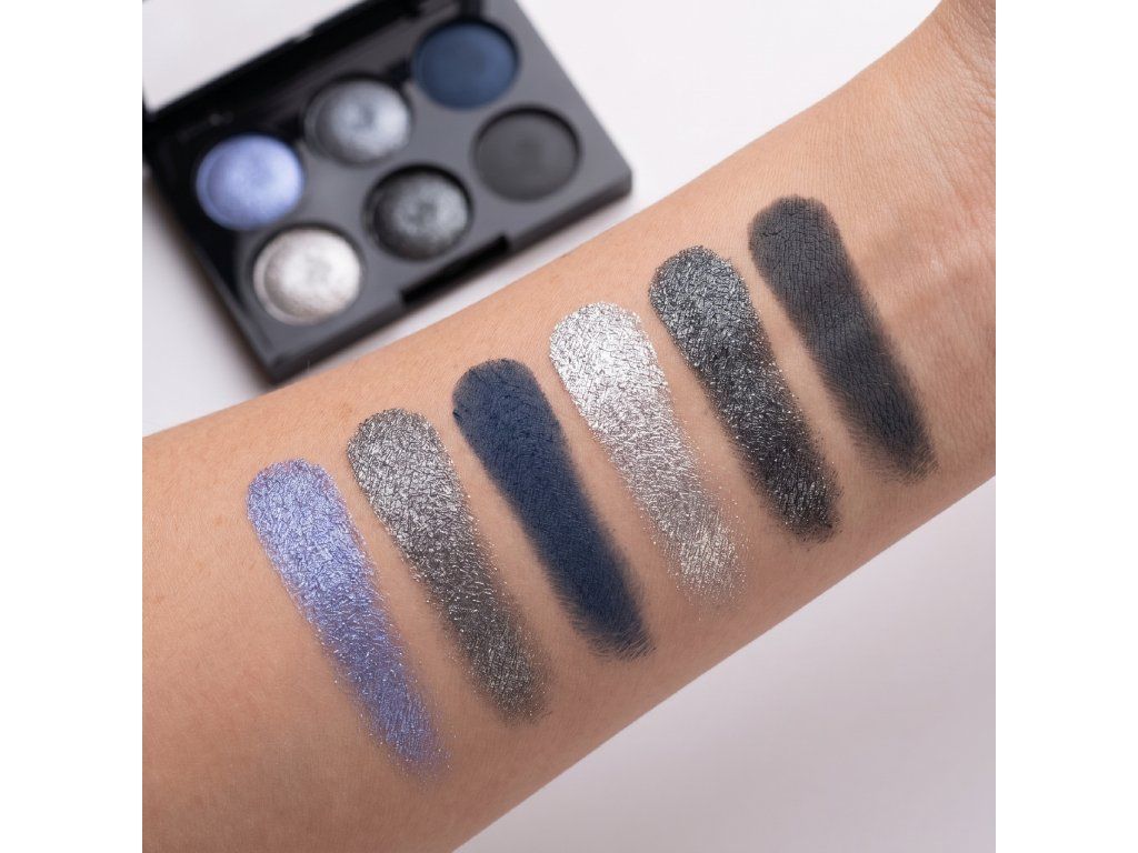 - 4 perleťové oční stíny – modrá a šedá s jemným třpytivým efektem