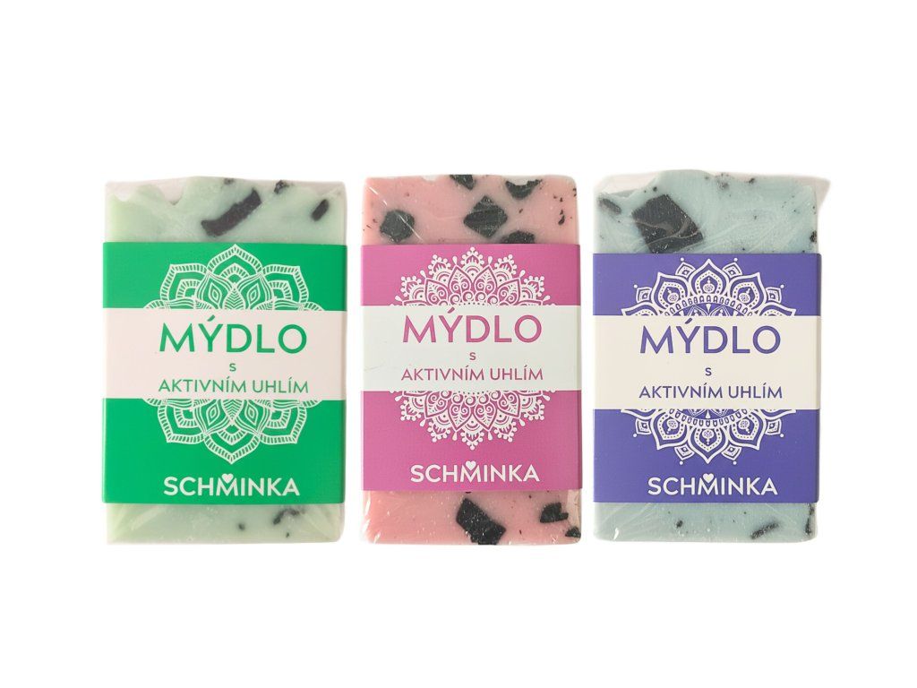 Olivová mýdla s aktivním uhlím – set 3 kusů (akce 2+1 zdarma)